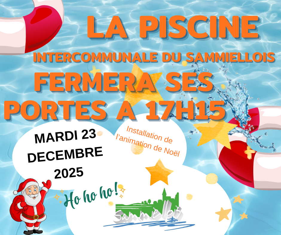 Fermeture exceptionnelle de la piscine à 17h15 mardi 23 décembre